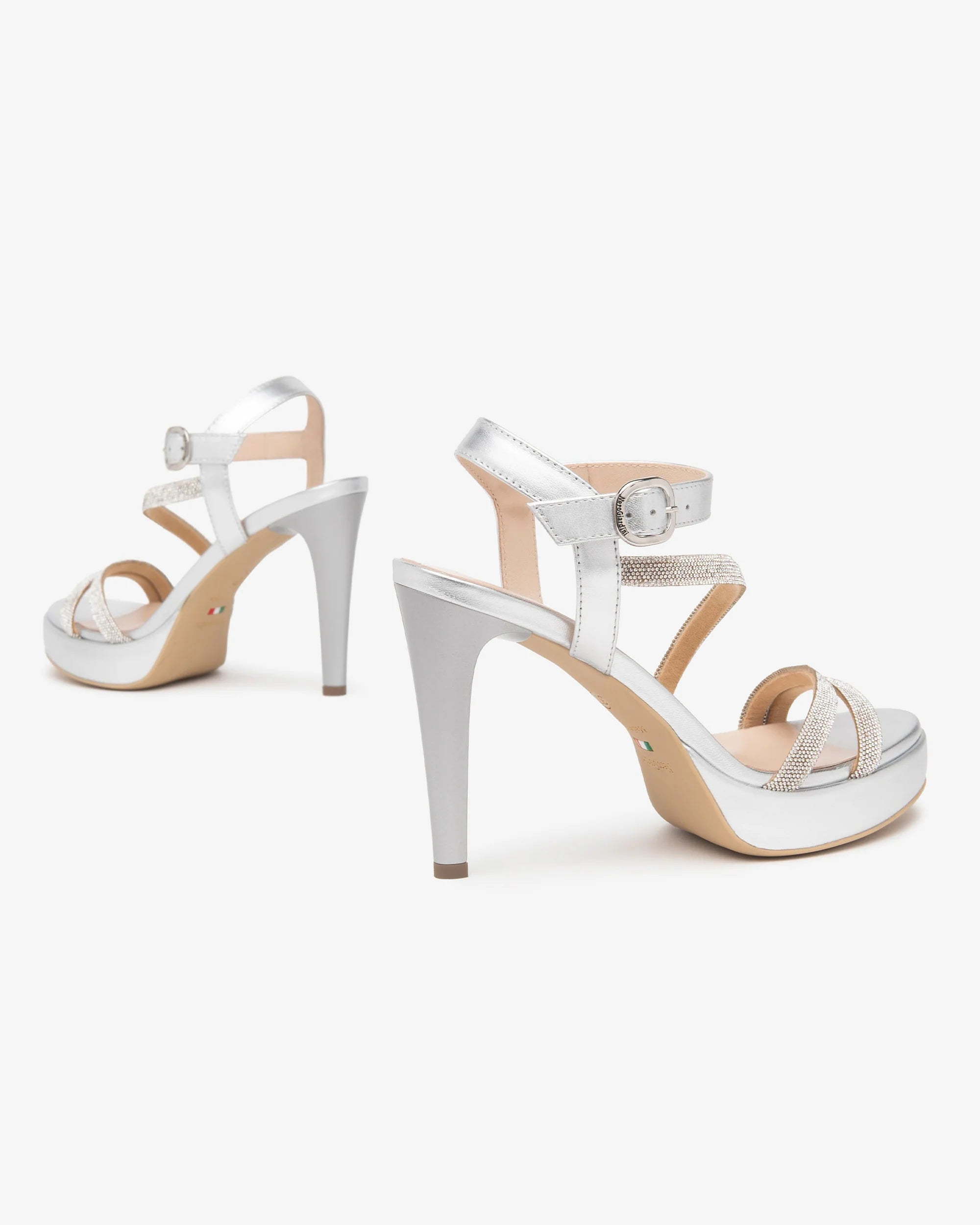 Sandalo in pelle plateau e strass