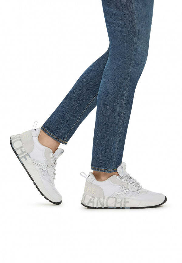 • Sneaker in mesh, tessuto tecnico e pelle, con occhielli di plastica.