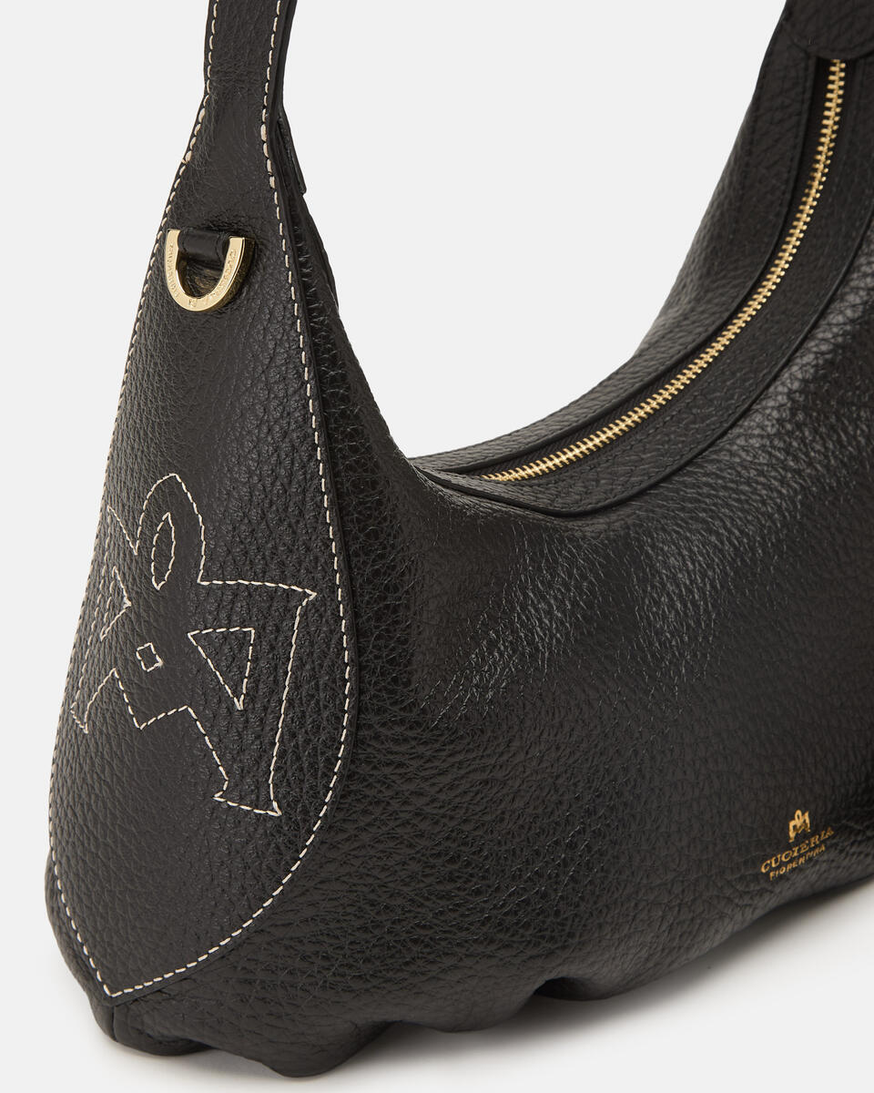 - Dettagli esterni: logo stampato a fuoco color oro e logo cucito laterale.