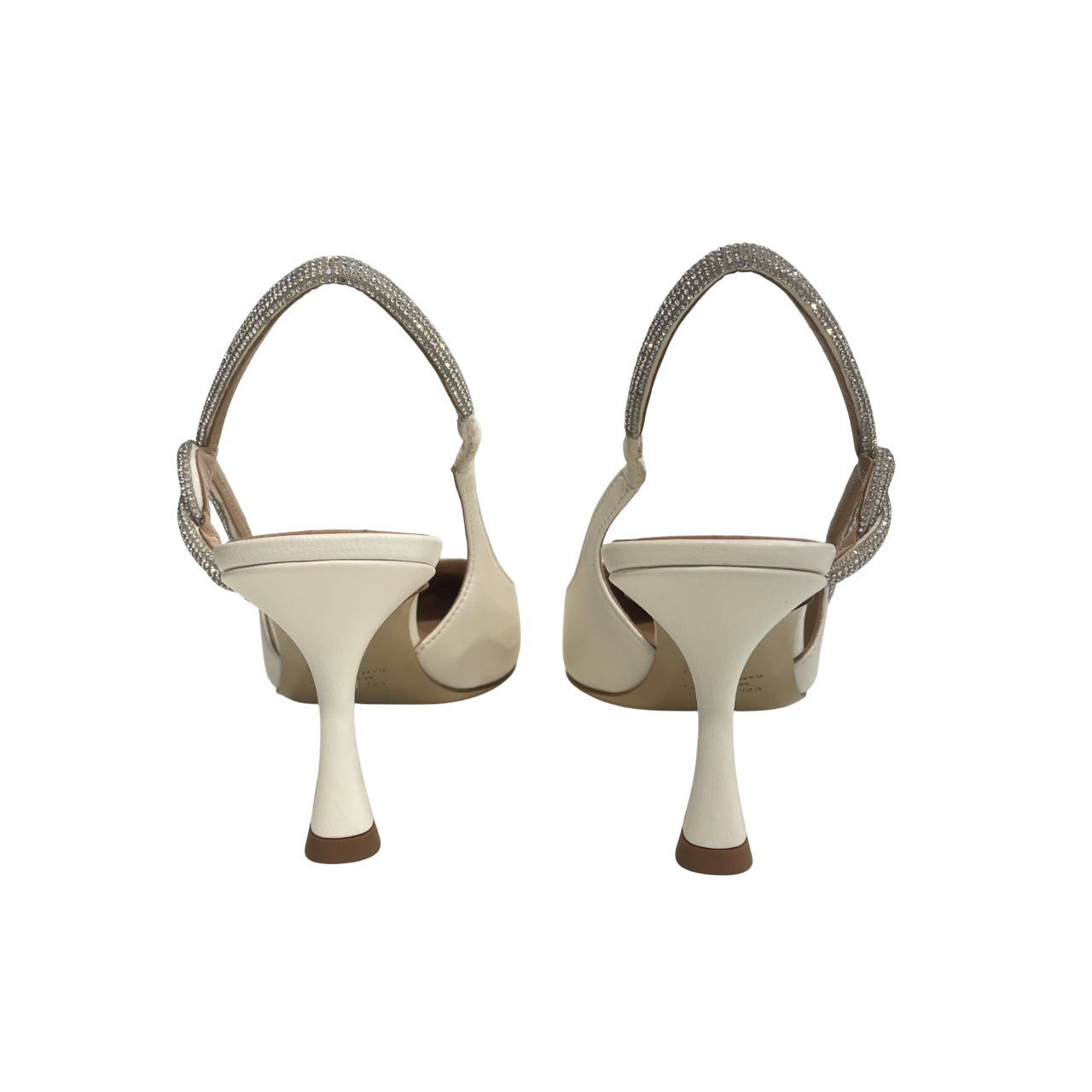 • Chanel slingback in morbida nappa con cinturino alla caviglia e applicazione di strass.