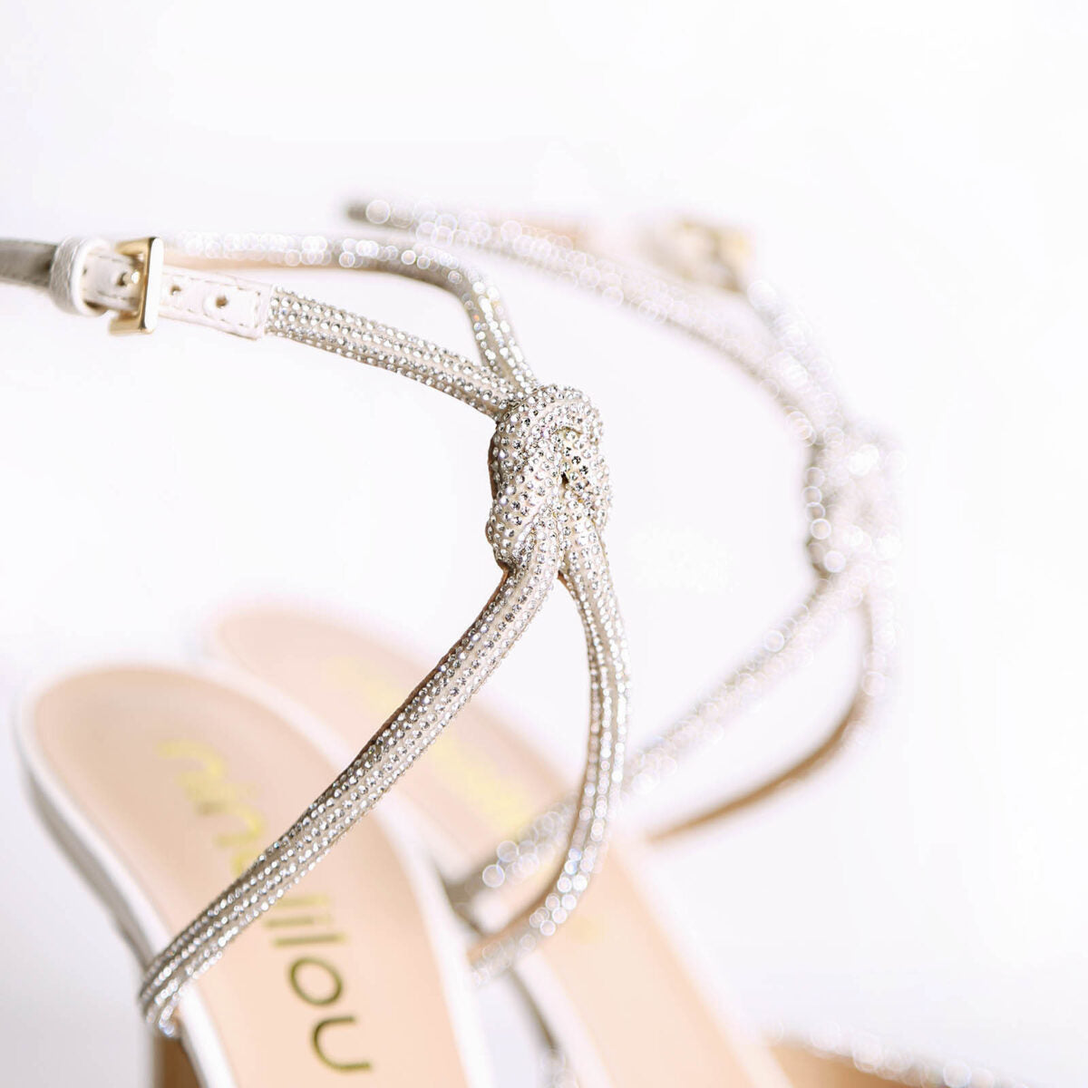 • Décolleté  aperta dietro in morbida nappa con cinturino alla caviglia e applicazione di strass.