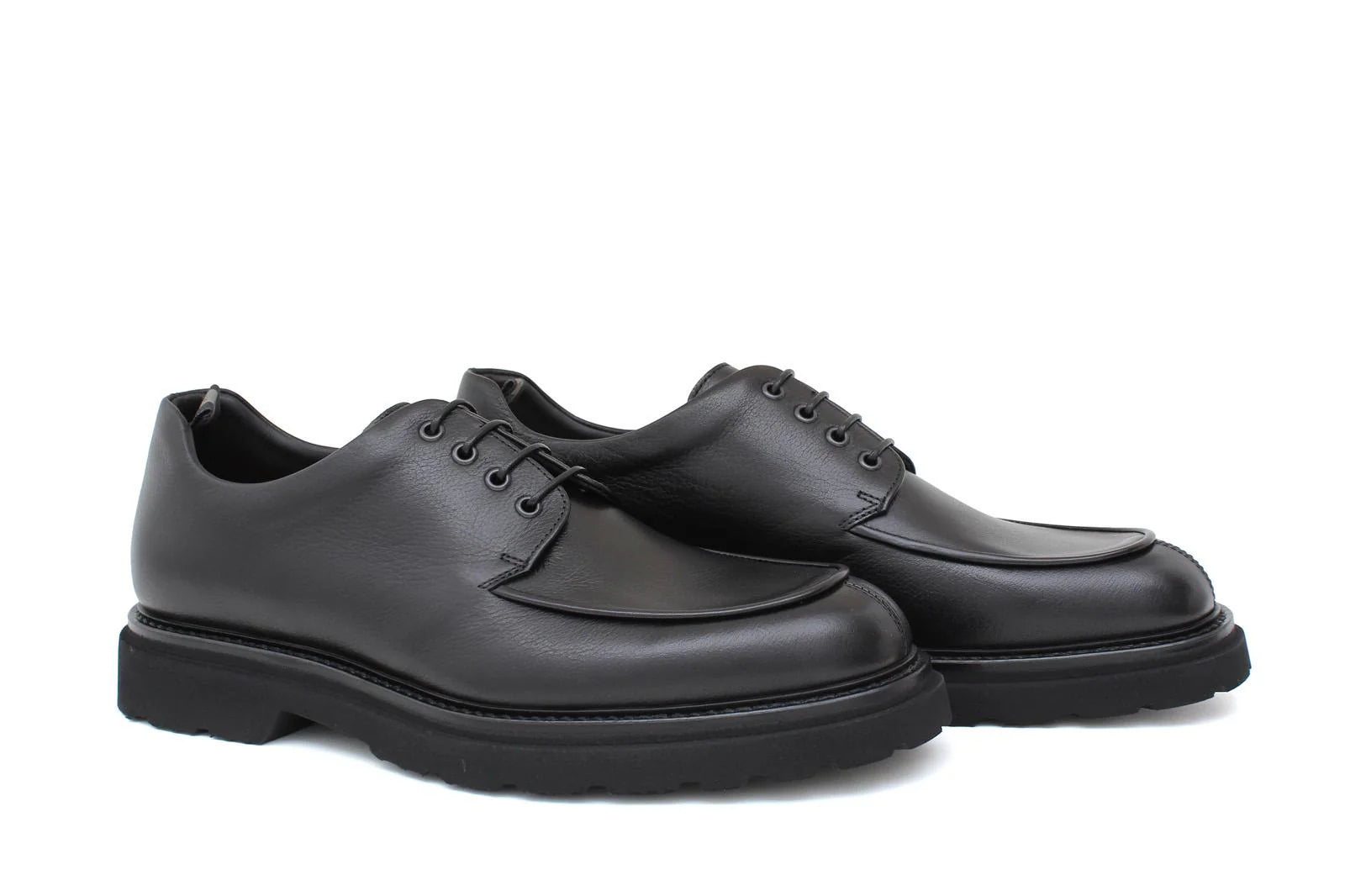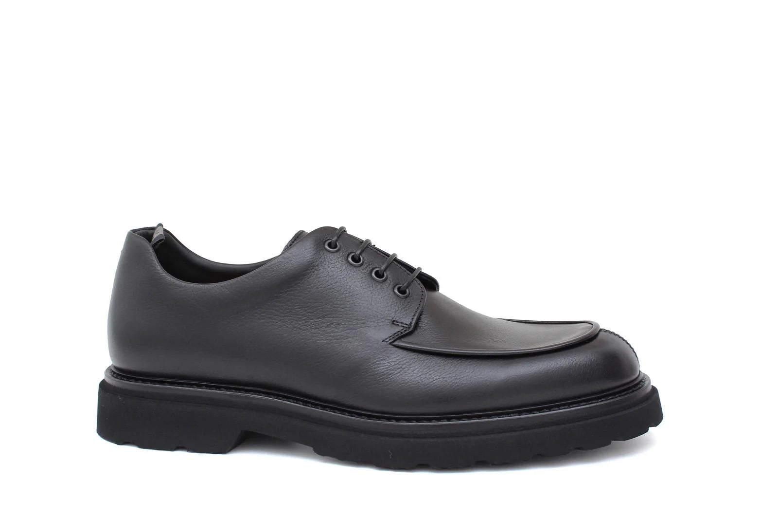 • Derby lavorazione ago in vitello spazzolato semilucido nero