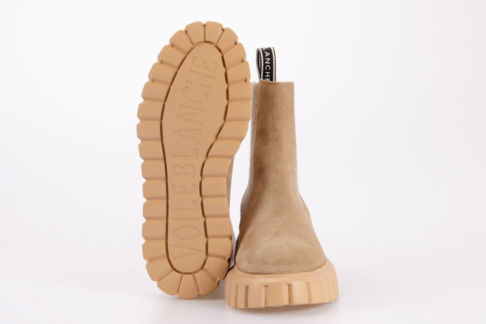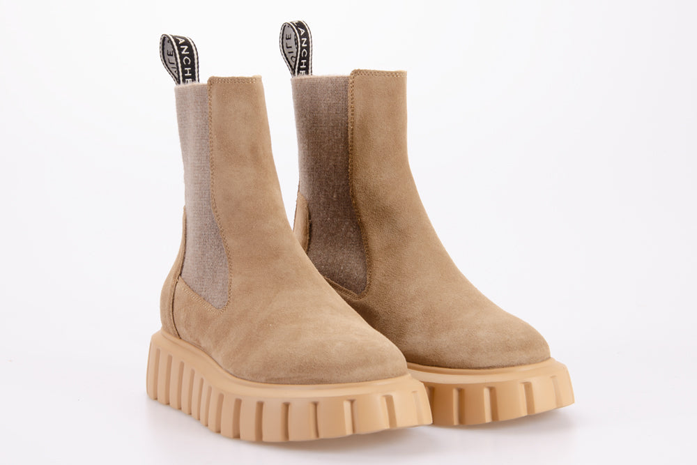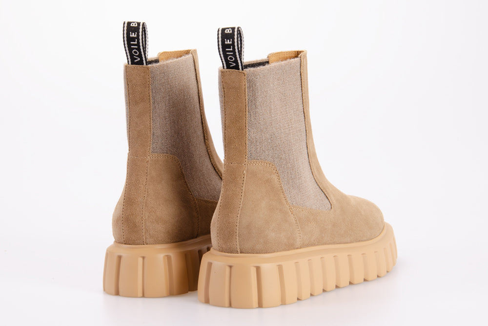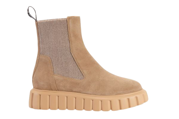 • Stivaletto tipo Chelsea con tomaia in suede e inserti elastici alla caviglia.
