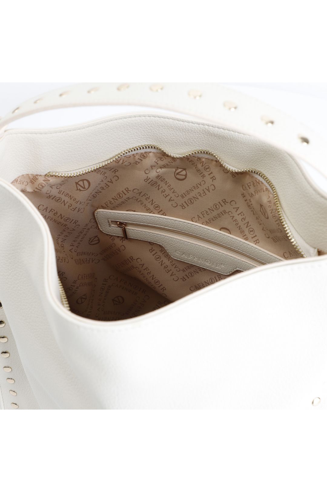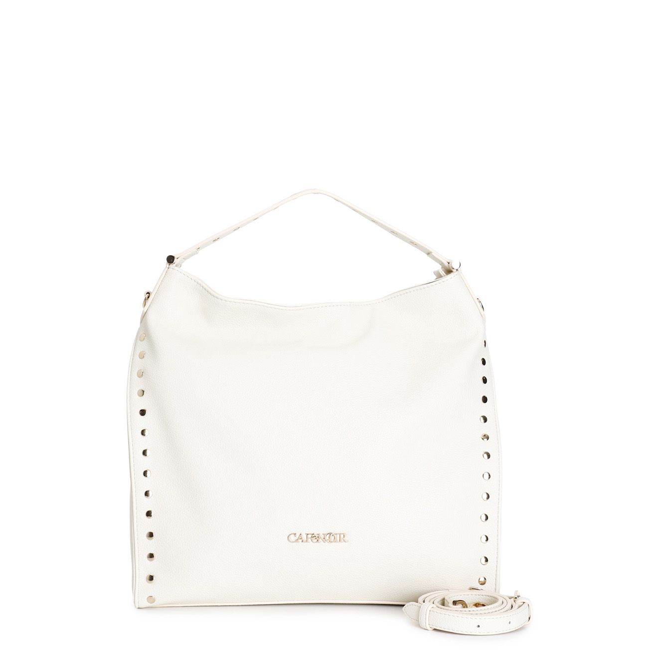 • Sacca morbida a spalla con applicazione rivetti e attacchi manico in metallo