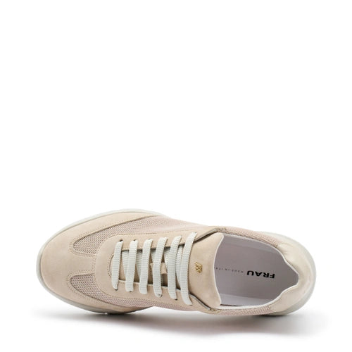 • Tomaia in tessuto semitrasparente e traspirante con inserti in pelle scamosciata e pelle