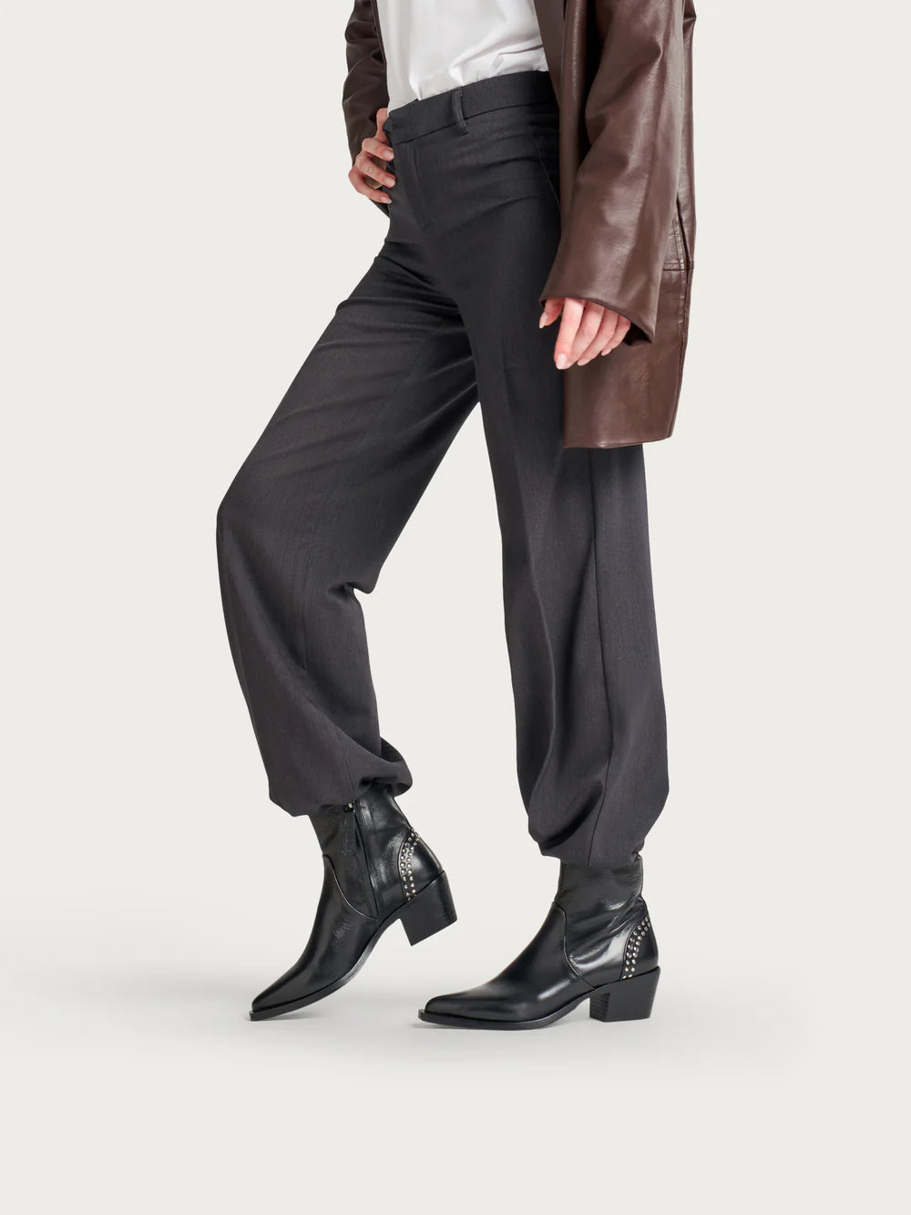 • Tomaia in pelle impreziosita da borchiette sul retro in metallo ossidato e comoda zip laterale
