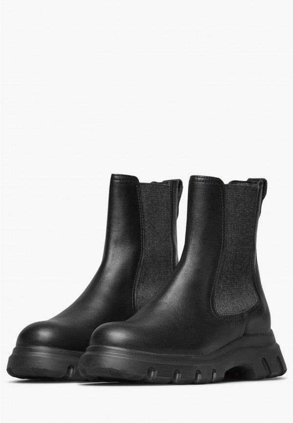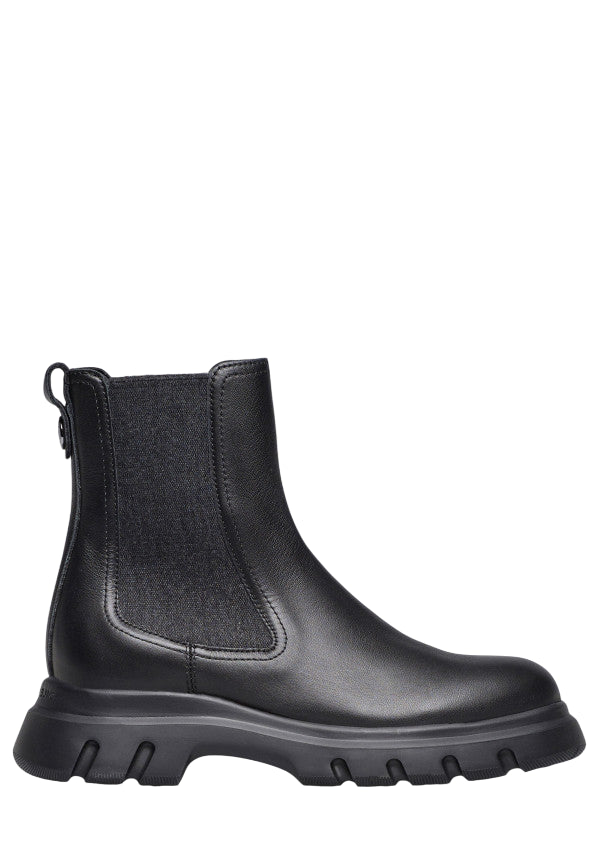 • Stivaletto Chelsea con tomaia in pelle e doppio inserto elastico alla caviglia.