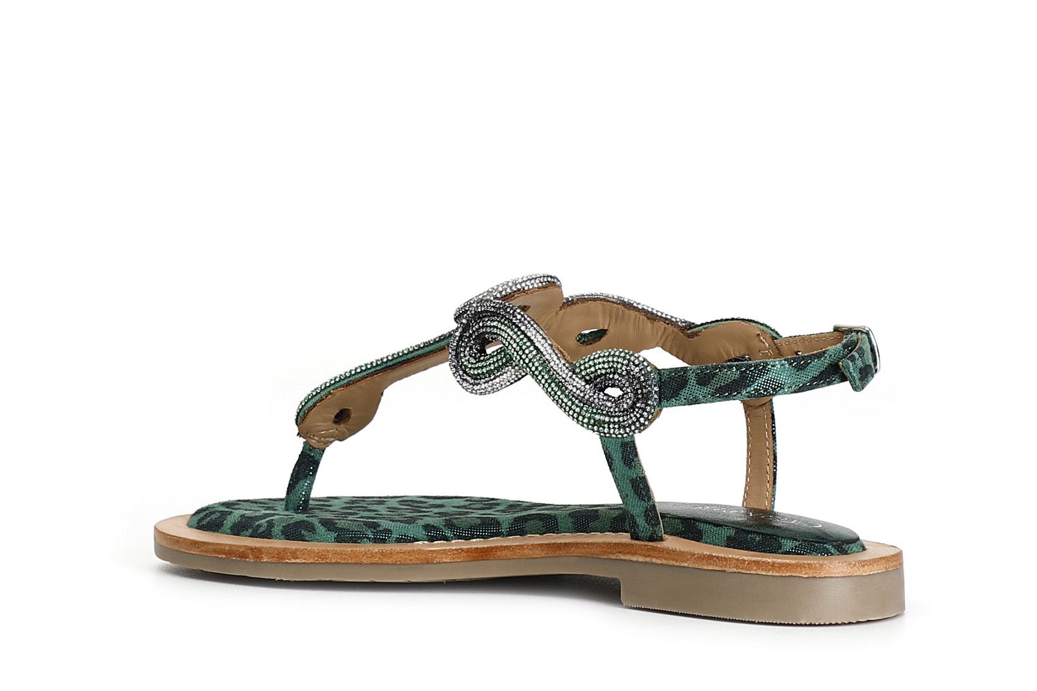 - Sandalo infradito in camoscio e stampa maculata con accessorio strass